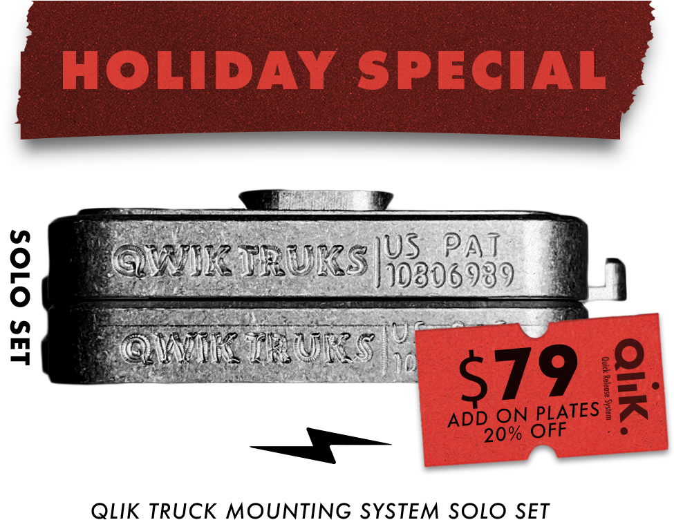 Patented quick-release skateboard truck system gives you the ability to quickly change your setup and swap trucks or decks.